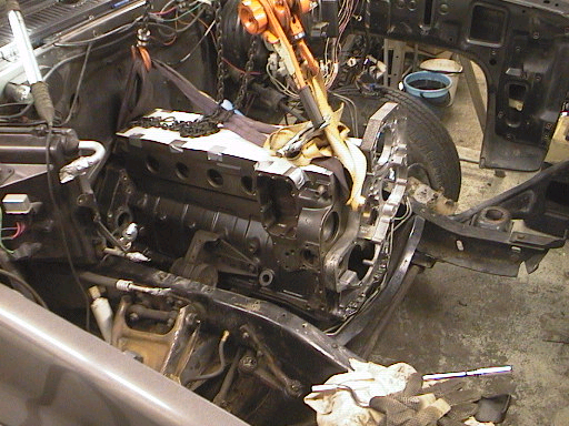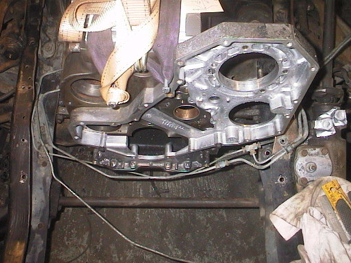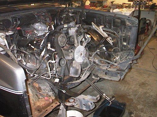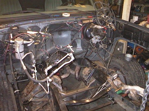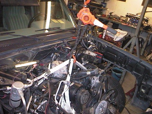 And off it goes, next step is to remove the wiring harness of the computer/TBI and took off the tranny.