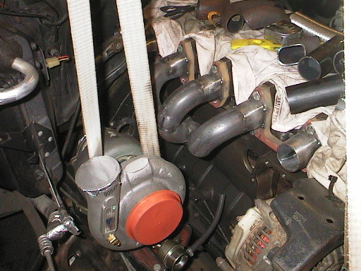 First tubes spot welded to the flanges, the head on it's place with old head gasket, next step is to "hang" the turbo on it's place and start tubing.....lot's of fun..