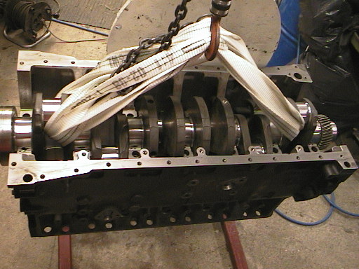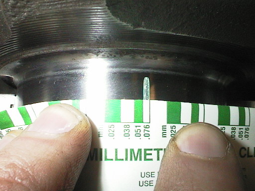 The clearance seems to be .076mm in every main bearing, next the crank is lifted off and installed back with oiled bearings to check the rod bearings clearance by using same method.