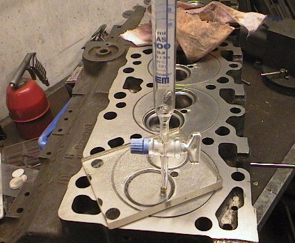 Measuring the valve pockets, intake 9,3cc and exhaust 6,4cc making total volume 15,7cc