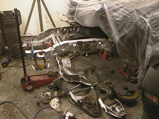 I took off everything to make the cleaning easier, now I could sand blast the smaller parts prior painting and replace lower arm bushings too. koneen runkoaisojen siivousta, tarkoitus hiekkapuhaltaa pienemmät osat ja vaihtaa vielä alatukivarren puslat...