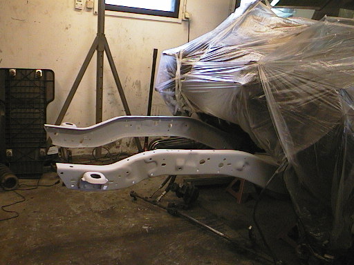 Got front part of the frame painted with zinc paint and today after work going to pick up primer (Temacoat GPL-S Primer) which is next layer and for top coating (Temadur 90). Here's links for the data sheets of primer and top coating. PL-s+primer.pdf and Temadur+90.pdf Runko maalattu sinkkimaalilla, linkeissä lisätietoa maalista