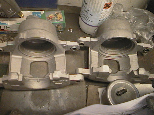 Steel balls where used for inside of the valve covers because they get them clean but leave the surface smooth, for the outside I used aluminium oxide to get the surface coarse for painting. The brake calipers are done with the aluminium stuff.