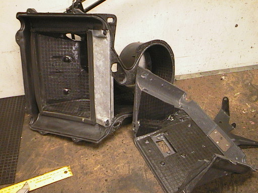 Took of the heater/ac case in order to clean it up, I'm going to add some bitumen inside of the case, since it's hard plastic and works as a echo box. I also need to make a heat shield for the end which is closes to turbo and removing the whole case eases up the work. I started to make the heat shield yesterday evening and it should be ready today, will add some pics of it tomorrow. Also added 2mm bitumen to the "intake" area of fresh air, for further help to reduce noise.Ilmastoinnin kennon lämpösuojan väsäämistä turbon hehkumisen vuoksi