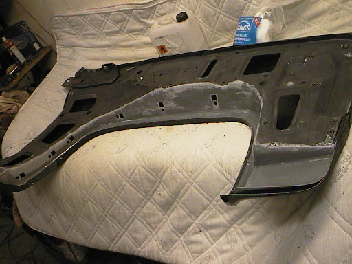 The fenders are grinded ready for paint and during weekend I'm going to spray them for same color as a body of burban.