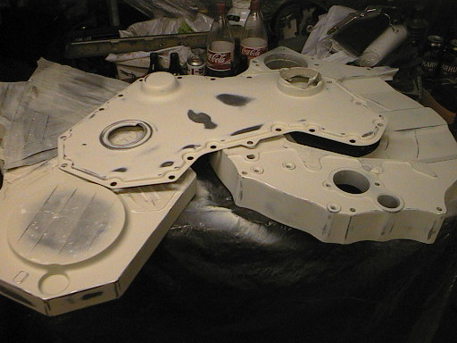 Engine covers after sanding down the sprayed filler, to smooth out small imperfections.Jakopään kotelon käsittelyä