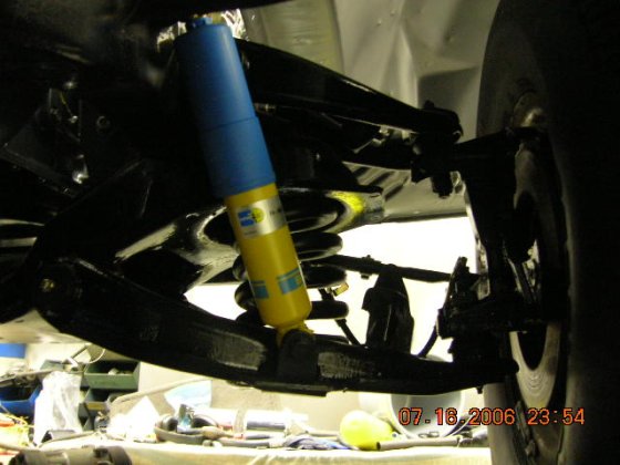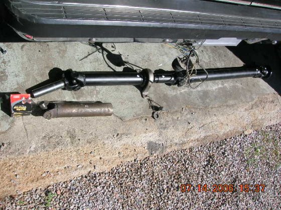 While waiting the radiator etc. from a shop's, I decided to crawl under the truck and do the things what I have been postponed for a long time. Bilstein shocks for all four corners, drain plug to the tranny oil pan and bolted it back on place, drained the rear end and washed it inside with solvent to get most of the old oil "smudge" off and poured in a fresh RedLine rear end oils. Also got the drive shaft back home on Friday, got the front part bolted back on, the rear is hanging there with a piece of wire, that's why the funny angle on the pic.