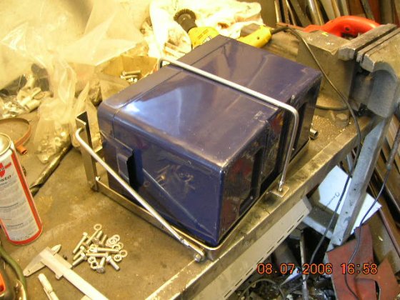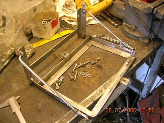 Battery trays done, when on lower position, it's easy to put a battery on it, connect the cables and lift back up. Finished the other side too last evening, now all they need is just cables and stuff.