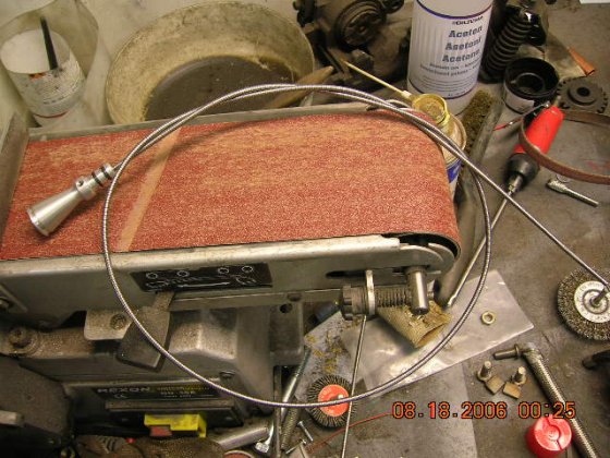 Lokar tranny oil level stick kit needed to be lengthened a bit, so tear it apart and installed a new longer hose and made a longer stick too. Now it sit nicely next to the AC drier.