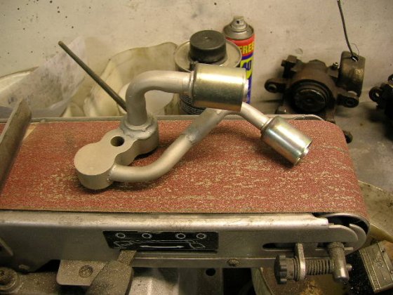 First thing to do for the ac is to move the drier further away from the turbo to arrange more room around it, it's not necessary right now with this set up but you never know what future brings. I weld a piece of aluminum tube to extend the pipe to the drier a bit, now it only needs a fastener to keep it from developing cracks to the pipes.