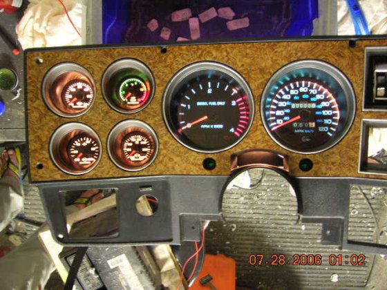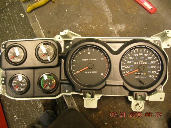 Got it finished last evening, I made a new lens to cover speedo and rpm, couldn't use the old one for two reasons. The gauges are other way round now and Dodge speedo got the trip meter stick on a different location than burban meter has, no big deal, it was easy to do. Also finished the wiring and added 12 pin connector to just plug it in to the burban wires, just need to find the correct ones from that side and plug them on. At least the lights are working well, the rest of it, will see when I turn the key first time. There are still few things to work out, the long beam indicator needs to be located somewhere, also got to find a place to Cyberdyne digital fuel gauge, but now I'm going to leave the dash the way it's and concentrate to make a frame mounted battery trays.